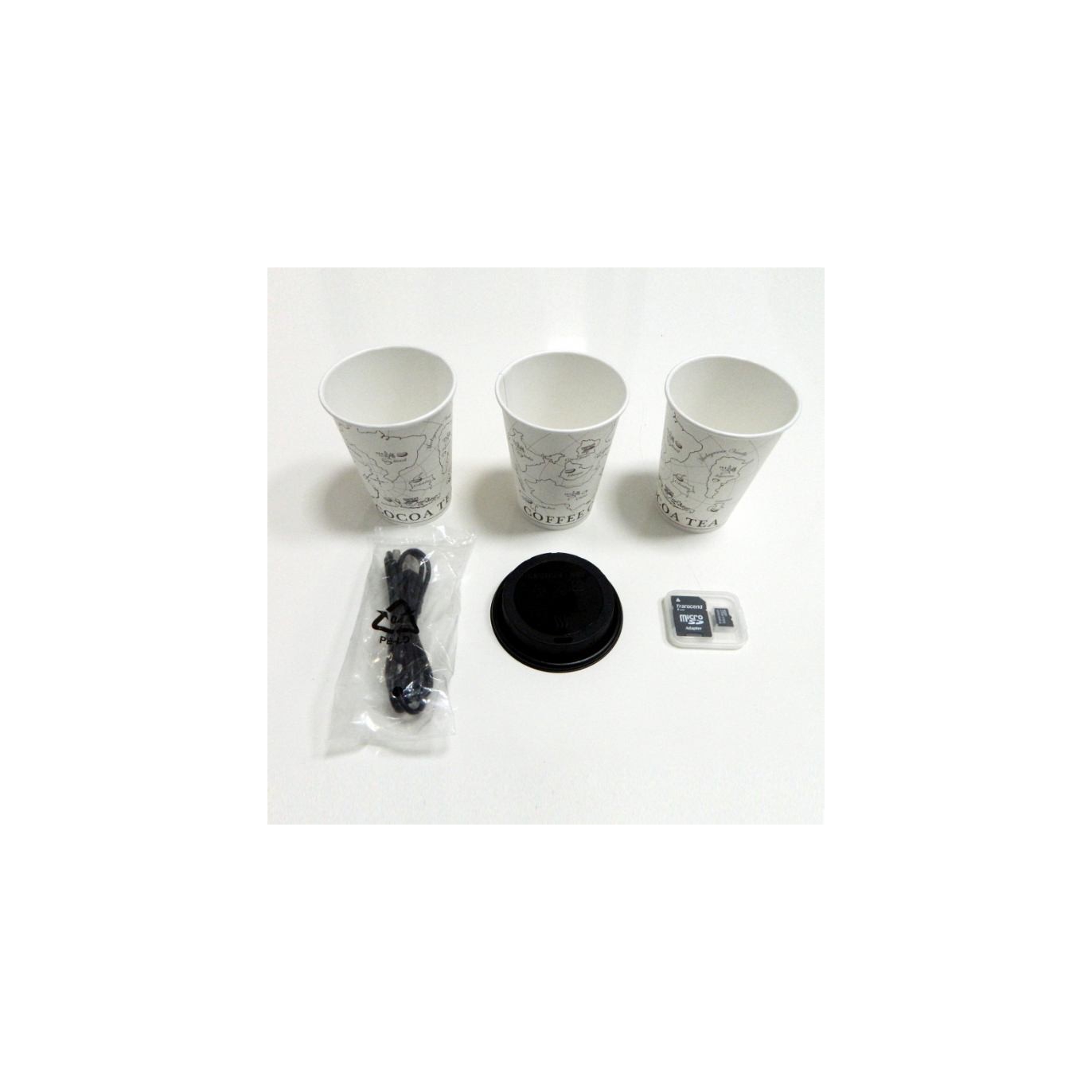 Zariadenie sníma video v rozlíšení 1280x720 a je dodávané s troma prídavnými pohármi na kávu. Veko je možné použiť aj pri bežne dostupných štandardných pohároch z kaviarni. Praktické zariadenie ukryté vo veku pohára môže byť použité toľko krát, koľko je potrebné vo vnútorných i vonkajších podmienkach.